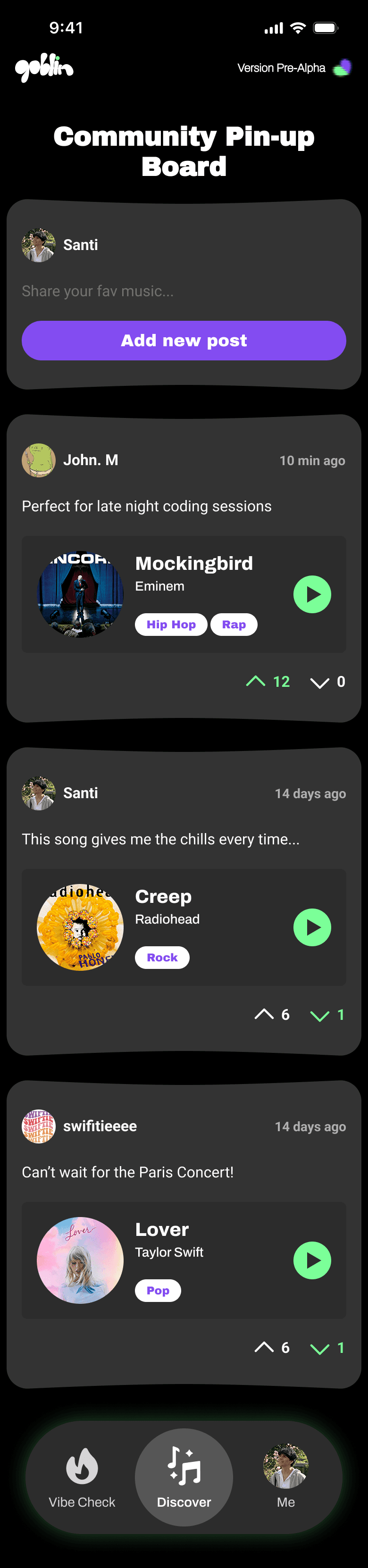 Goblin tracks what people are listening to—both globally and within your friend circle—so you’re always in the know.